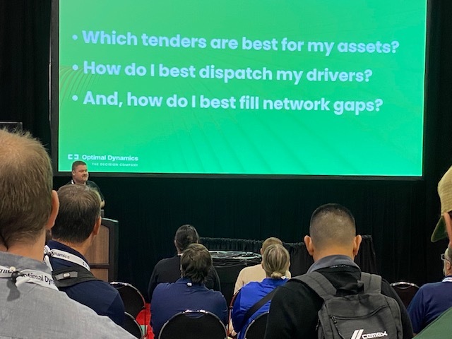 This year, we showcased how our decision automation solutions are transforming the decision-making process and overall operational efficiency for enterprise trucking companies. We also participated in a session that highlighted how one trucking company is realizing the benefits of decision automation through Optimal Dynamics’ integration with McLeod.